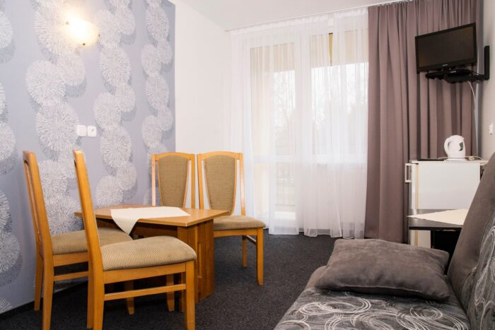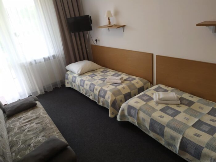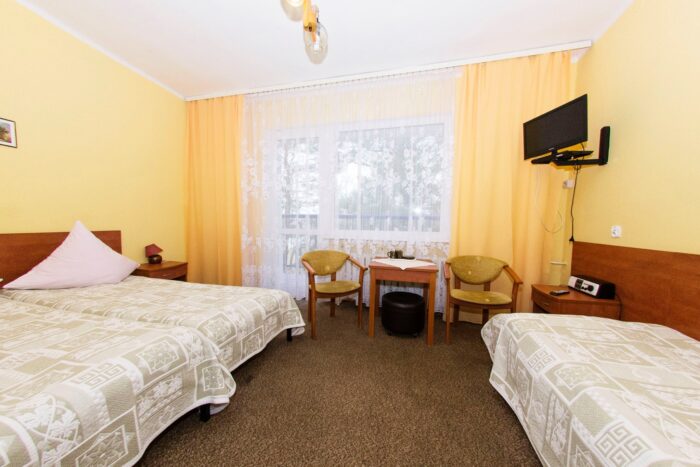 Mieszkamy w Ośrodku Wypoczynkowym ANIA w Dźwirzynie, w pokojach 2,3,4 osobowych z łazienkami i tv. Obiekt położony jest na dużym, ogrodzonym terenie zielonym o powierzchni blisko 2,6 ha, zaledwie 450 m od morza. Rozległa przestrzeń, alejki spacerowe oraz sportowa infrastruktura zapewniają komfortowy i bezpieczny wypoczynek.